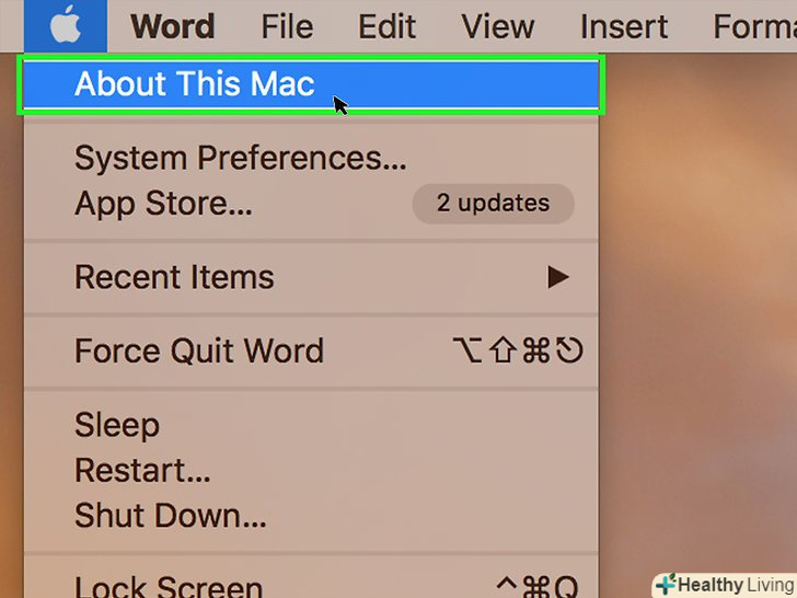 НатиснітьПро це Mac. це опція в меню. Відкриється вікно "про це Mac".