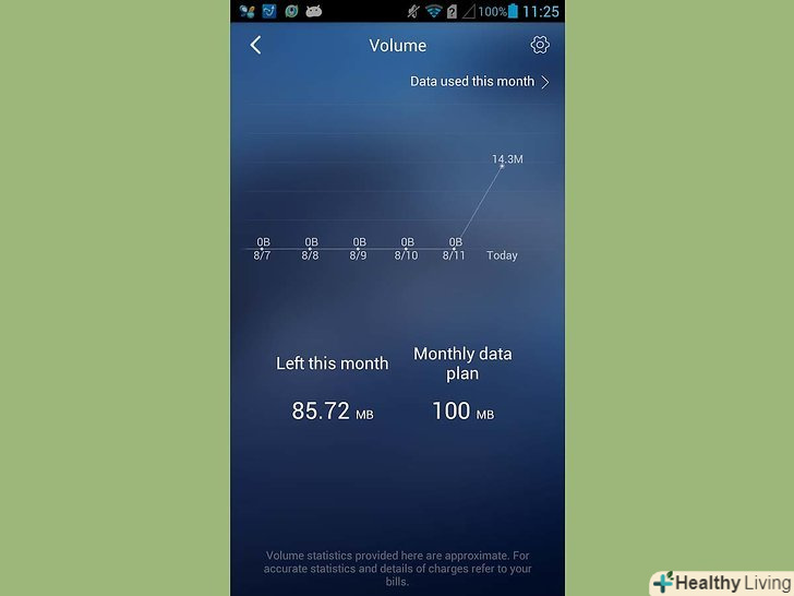 Перегляньте поточне використання пропускної здатності. загальна пропускна здатність показується в розділі Volume (обсяг) домашньої сторінки.- Торкніться пункту "Volume"("обсяг"), щоб подивитися статистику використання трафіку.
