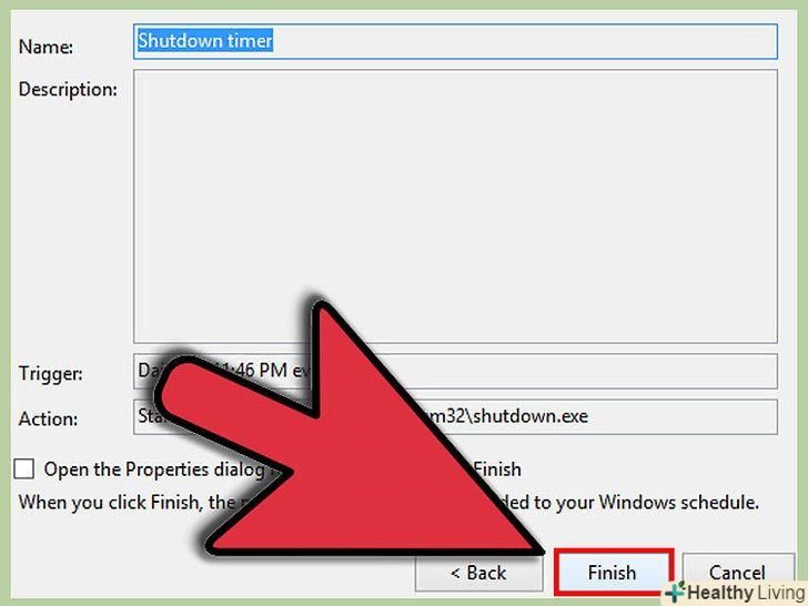 Перегляньте свої налаштування.у вікні зведення перегляньте параметри, щоб переконатися, що ви вибрали правильний день. Натисніть Шаблон: кнопку щоб зберегти завдання. Тепер ваш комп'ютер буде вимикатися в цей певний час кожен день.[1]