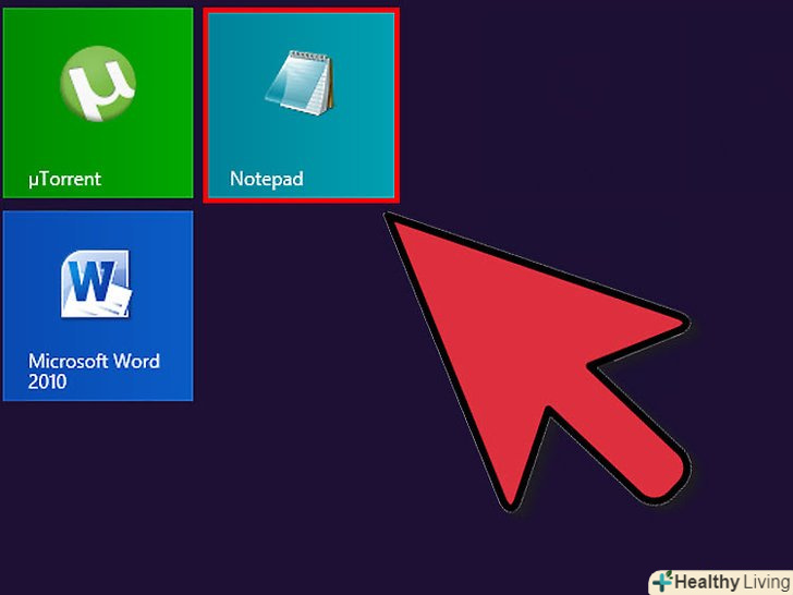 Відкрийте Notepad, вибравши Startgt; All Programmesgt; Accessoriesgt; Notepad.або ви можете просто ввести " notepad "(без лапок), в меню Start і натисніть клавішу Enter.