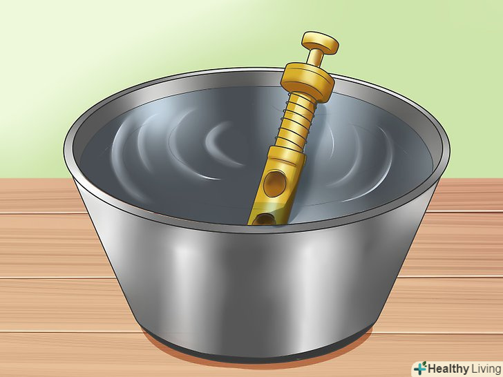 Опустіть один вентиль у воду, не поглиблюючи його верхню частину, тому що її повстяний елемент може зруйнуватися під впливом води.почистіть щіткою всі 3 отвори вентиля, щоб видалити нарости бруду. Виконайте те ж саме з кожним вентилем.