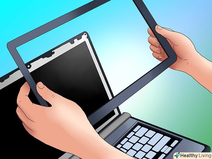 Зніміть лицьову панель, щоб отримати доступ до екрану ноутбука.обережно витягніть лицьову панель, тримаючи край однієї сторони лицьової панелі вказівним пальцем і натискаючи на екран великими пальцями.- Повторіть описаний процес на всіх сторонах екрану, щоб повністю зняти лицьову панель.