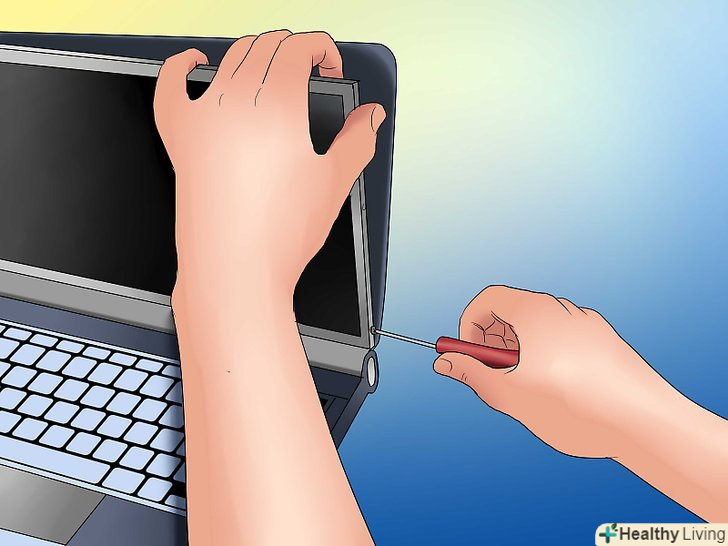 Знайдіть і відкрутіть гвинти кріплення кронштейнів.екран кріпиться до корпусу ноутбука за допомогою металевих кронштейнів з обох сторін корпусу.- Покладіть гвинти в надійне місце (щоб не втратити їх).