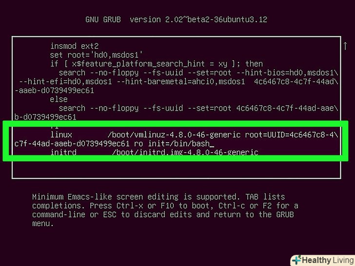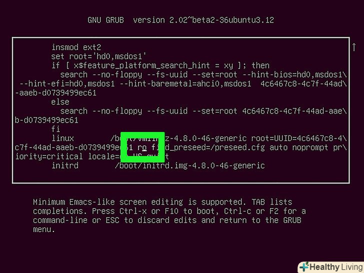 Введітьinit=/bin/bash після ro. кінець рядка повинен виглядати наступним чином:ro init=/bin/bash.- Зверніть увагу на пробіл між