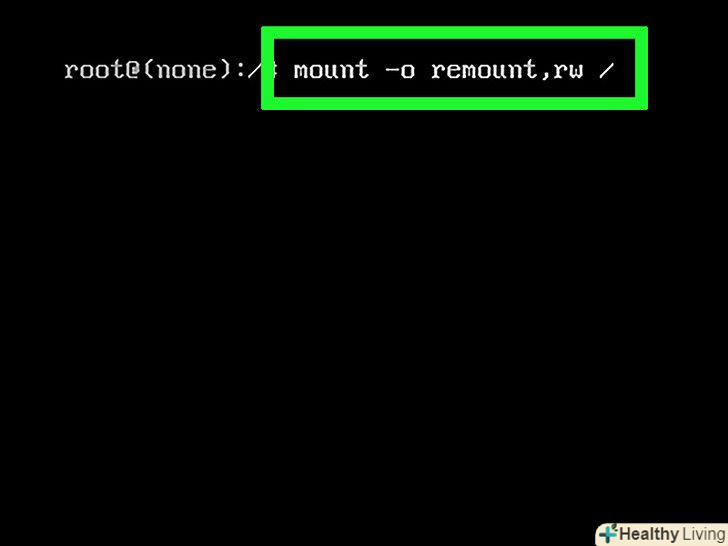 Введітьmount –o remount,rw / в терміналі і натисніть ↵ Enter.це призведе до монтування файлової системи в режимі читання / запис.