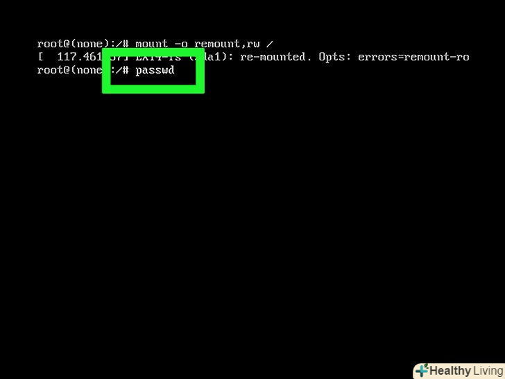 Введітьpasswd в терміналі і натисніть ↵ Enter.оскільки в режимі одного користувача ви автоматично отримуєте права суперкористувача, немає необхідності додавати в цю команду додаткові параметри.