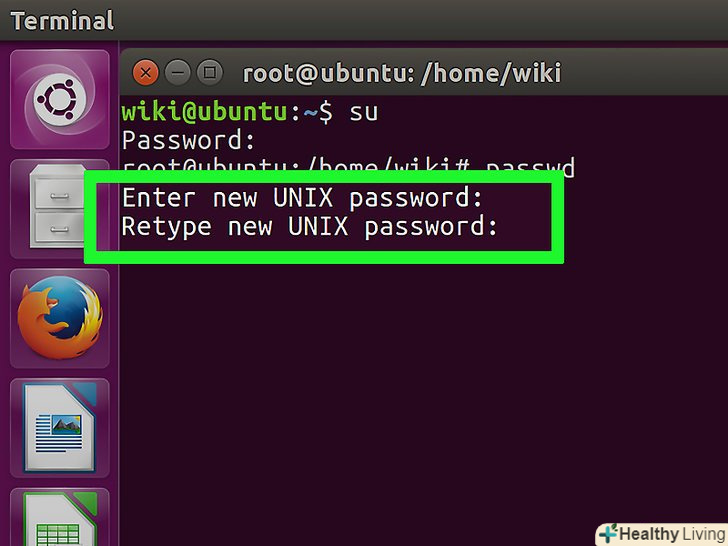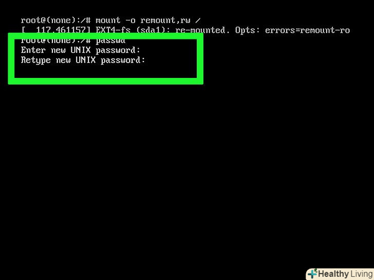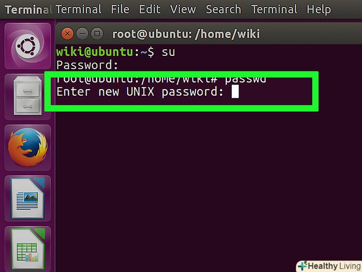 Введітьpasswd і натисніть ↵ enter. на новому рядку з'явиться Enter new UNIX password: (Введіть новий пароль).
