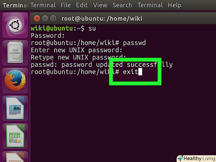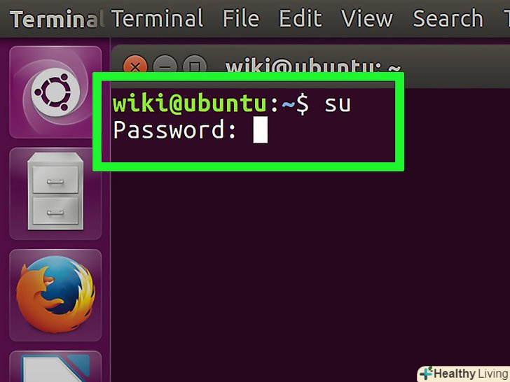 Введіть поточний пароль root, а потім натисніть↵ Enter.якщо введено вірний пароль, Ви отримаєте права суперкористувача.- Якщо ви ввели неправильний пароль, введітьsu і повторіть спробу.
