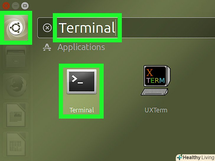 Відкрийте термінал.відкрийте «Меню», а потім натисніть «Термінал». Термінал в Linux являє собою аналог командного рядка в Windows і терміналу в Mac OS X.- Графічні інтерфейси користувача Різні у різних дистрибутивів Linux, тому вам, можливо, доведеться пошукати термінал всередині папки в «Меню».