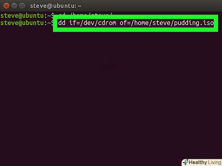 of= / home/username / pudding.iso, щоб створити ISO-файл під ім'ям "pudding «в папці»home". - Якщо на комп'ютері є кілька оптичних приводів, вони будуть позначені цифрами, наприклад, перший привід буде називатися "cd0«, другий – » cd1" і так далі.