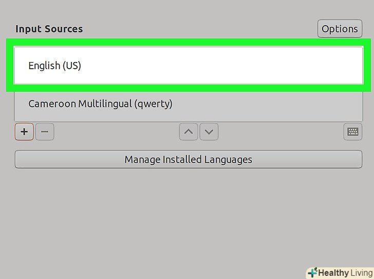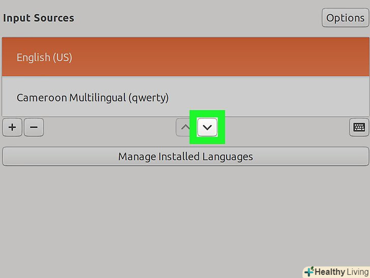 Клацніть по∨. цей значок знаходиться під нижньою розкладкою клавіатури. Нова Розкладка клавіатури переміститься у верхню частину меню (а стара розкладка — вниз). Тепер нова розкладка стала розкладкою за замовчуванням.- Щоб видалити стару розкладку клавіатури, натисніть "- «у нижній частині розділу»джерела вхідних даних".