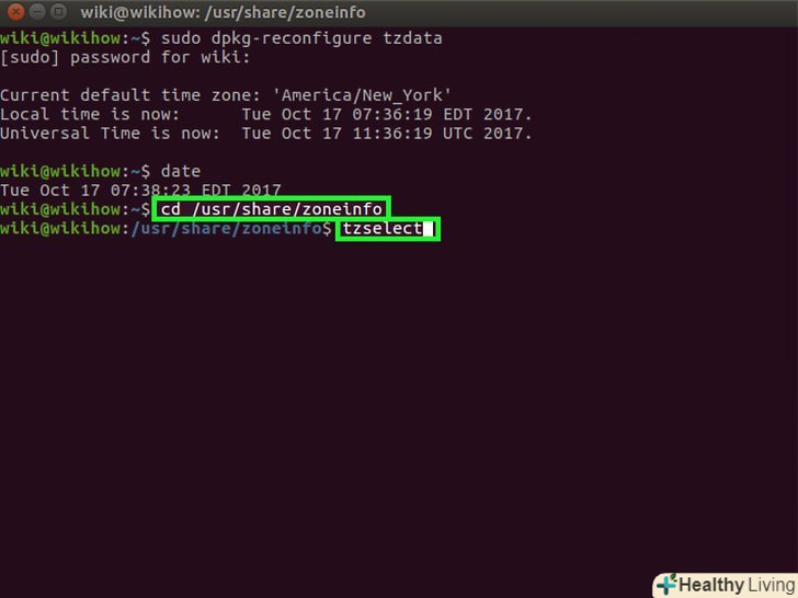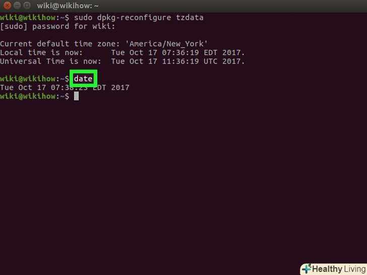 Переконайтеся, що ви змінили часовий пояс. ще раз введіть команду date і переконайтеся, що на екрані показаний правильний часовий пояс. Якщо це так, то ви успішно змінили часовий пояс.