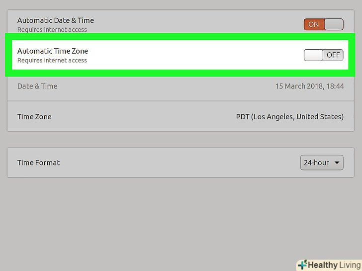 Вимкніть автоматичне визначення часового поясу.для цього натисніть на синій перемикач "автоматично визначати часовий пояс".- Якщо цей параметр вже вимкнено, пропустіть цей крок.