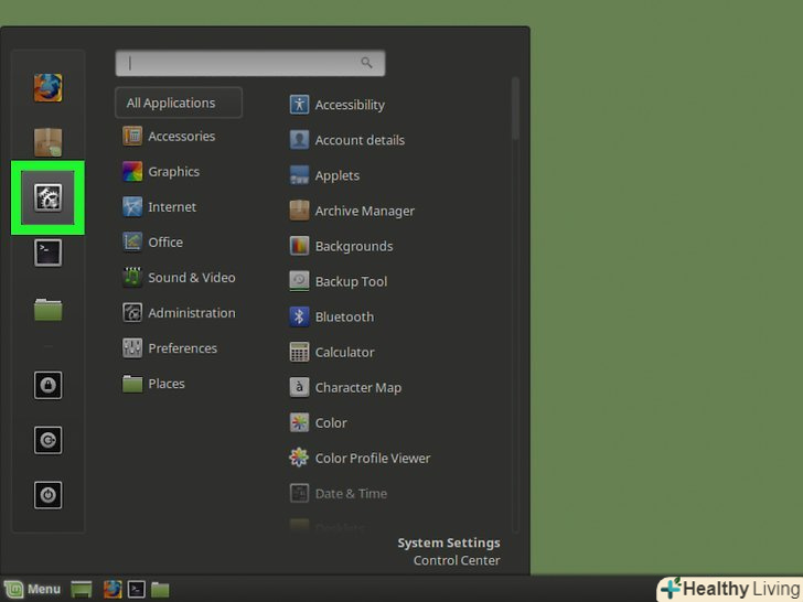Клацніть по іконці "Налаштування" (гайковий ключ і викрутка) в лівому нижньому кутку меню.відкриється Центр управління Ubuntu.