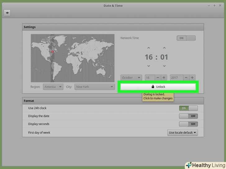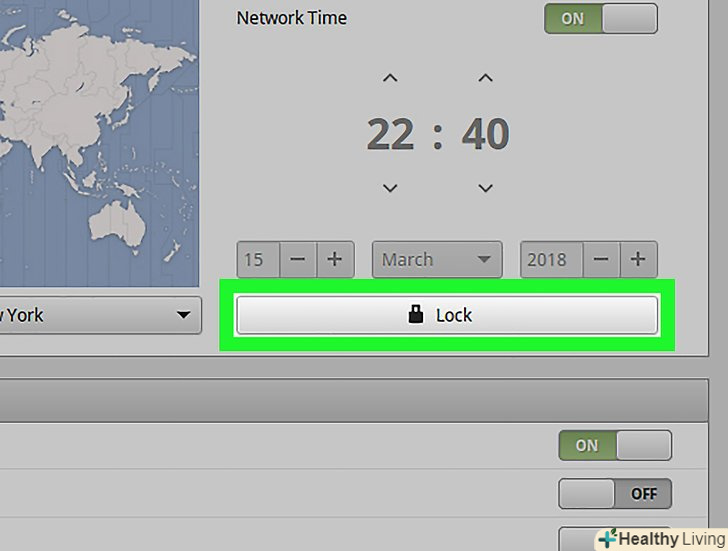 Натисніть наЗаблокувати У правій частині вікна, щоб зберегти часовий пояс і заблокувати меню «Дата і час».
