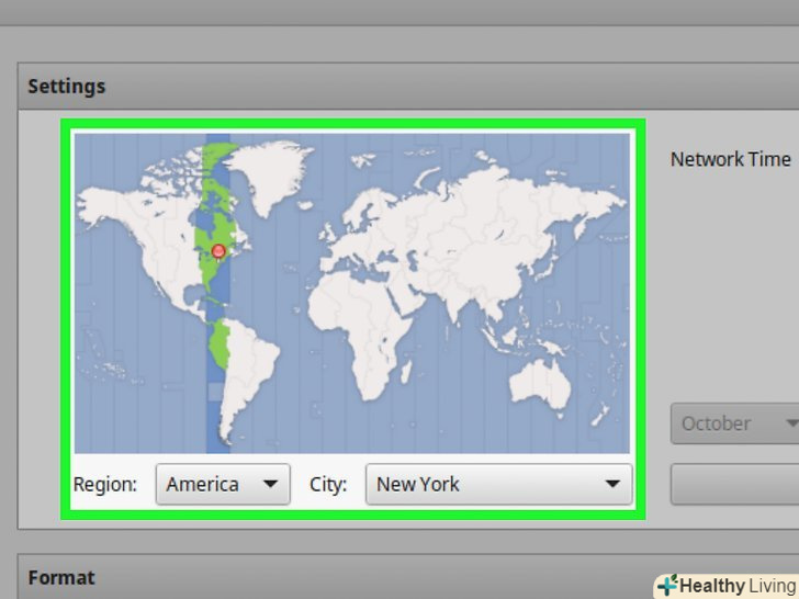 Виберіть часовий пояс.Виберіть своє приблизне місце розташування на карті світу. Час на комп'ютері має змінитися відповідно до часовим поясом в обраному регіоні.