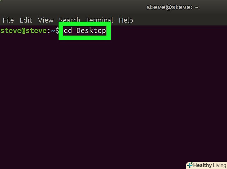 Перейдіть в потрібний каталог. введітьcd шлях , де «шлях» — це шлях до папки з потрібним файлом. Тепер натисніть ↵ Enter.- Наприклад, якщо файл знаходиться в папці "Desktop", в терміналі введітьcd Desktop.