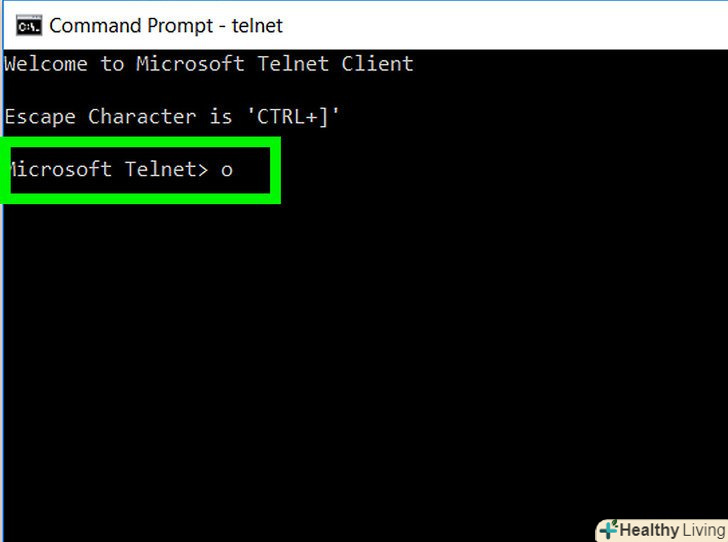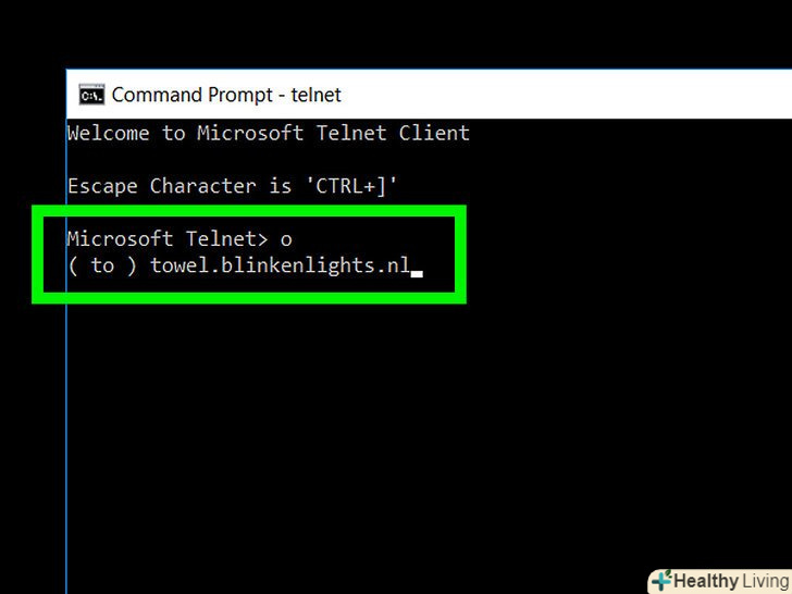 Введітьo натисніть ↵ Enter.ця команда дозволить встановити Telnet-з'єднання. Командний рядок зміниться на (to).