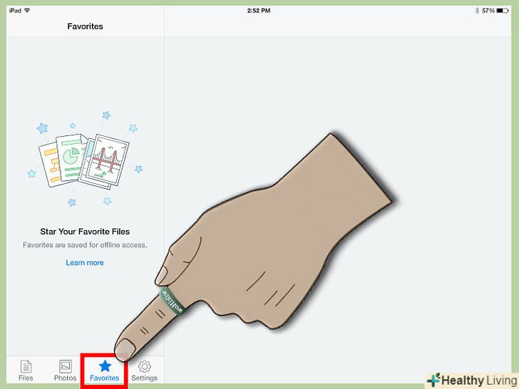 Відкрийте файл у вашій папці Dropbox.клікніть по значку» зірка " в правому верхньому куті екрану. Дана дія збереже файл в категорії "Favorite" (Вибране), так що ви зможете отримати доступ до нього в оффлайн режимі на своєму iPad.- Вам, ймовірно, доведеться завантажити додаток для попереднього перегляду файлів Dropbox. Наприклад, вам може знадобитися PDF viewer для відкриття певних файлів або MS Office для перегляду документів Word.