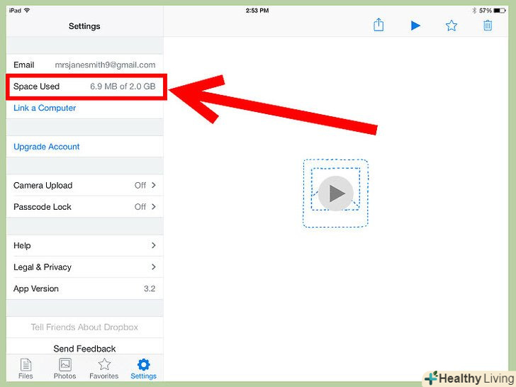 Слідкуйте за розділом " Space Used "(використовуваний простір) свого облікового запису, де відобразиться заповнений відсоток вашої безкоштовної облікового запису.