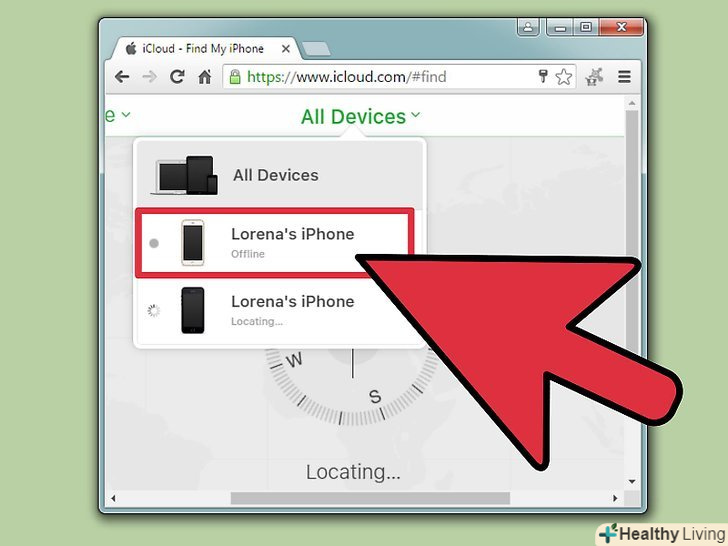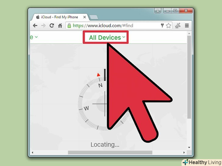 Відкрийте сайтicloud.com/find на іншому комп'ютері або пристрої.для цього використовуйте веб-браузер на будь-якому пристрої або комп'ютері; також можна скористатися додатком «Знайти iPhone» на іншому iOS-пристрої.