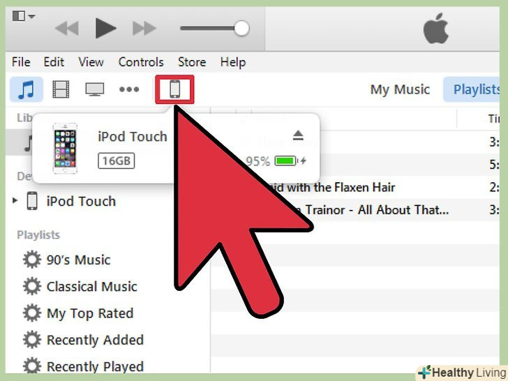Відкрийте iTunes і виберіть свій iPod. Значок у вигляді iPod відобразиться у верхній частині екрана.- Якщо потрібно ввести код доступу (коли ви підключите iPod до комп'ютера) або якщо ви ніколи не синхронізували iPod з iTunes на своєму комп'ютері, перейдіть в розділ «Режим відновлення».