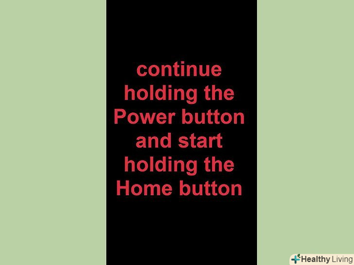 Продовжуйте утримувати кнопку живлення і почніть утримувати кнопку «Додому».почніть утримувати кнопку "додому" після того, як ви утримували кнопку живлення протягом трьох секунд.