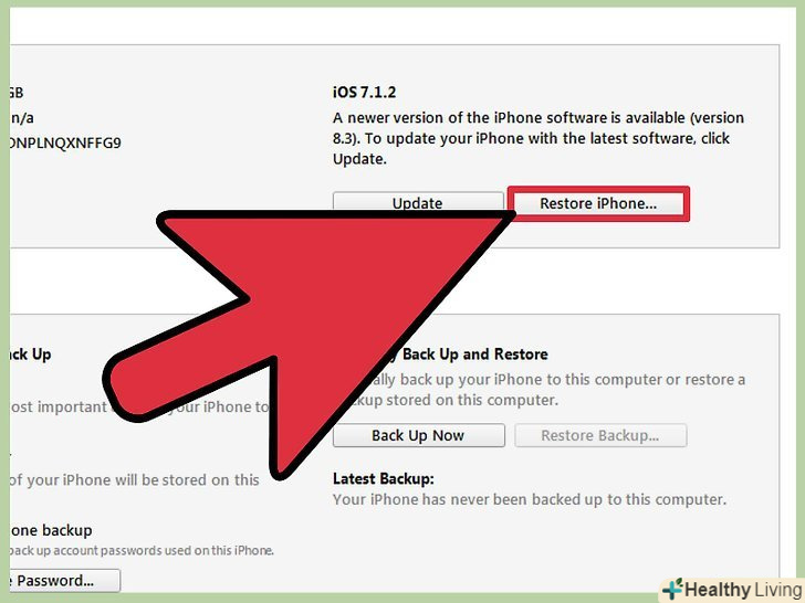 Використовуйте цей метод, якщо iTunes запитує пароль або якщо ви ніколи не синхронізували iPod з iTunes.у цьому випадку на iPod потрібно включити режим відновлення, щоб відновити пристрій без необхідності використовувати код доступу.- У режимі відновлення створити резервну копію iPod не можна. Тому всі ваші дані будуть втрачені.