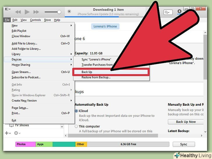 Натисніть "Назад", щоб створити резервну копію iPod.з її допомогою можна відновити дані, коли Налаштування iPod будуть скинуті.- Переконайтеся, що резервна копія буде створена в папці "цей комп'ютер".