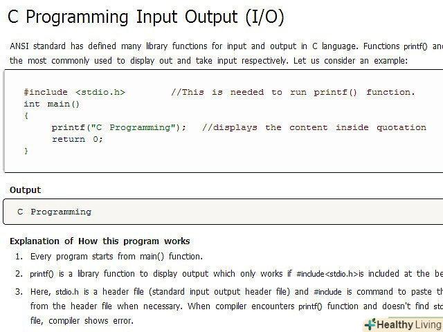 Почніть з простих і невеликих програм і, потім, рухайтеся до більш складних завдань.- Запишіться на спеціалізовані курси, щоб поліпшити знання C. Читайте книги про Програмування на C.
