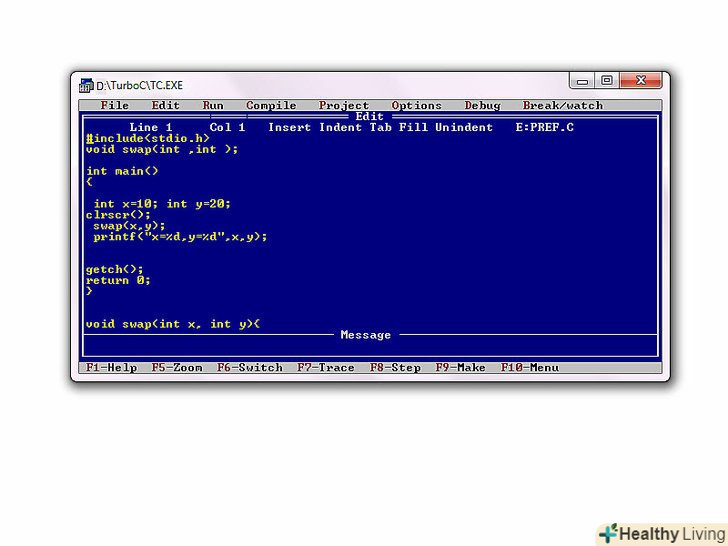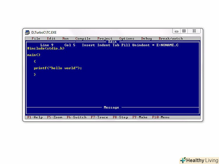 Як тільки ви встановите компілятор Turbo C++, дізнайтеся про функції#include, printf (Printf використовується для виведення повідомлень в консоль) і scanf (Scanf використовується для сканування повідомлень з консолі в пам'ять).