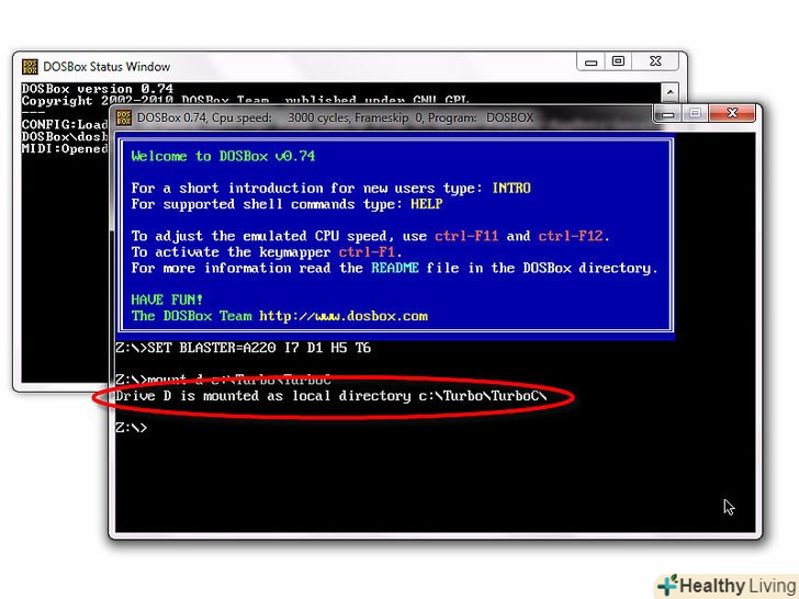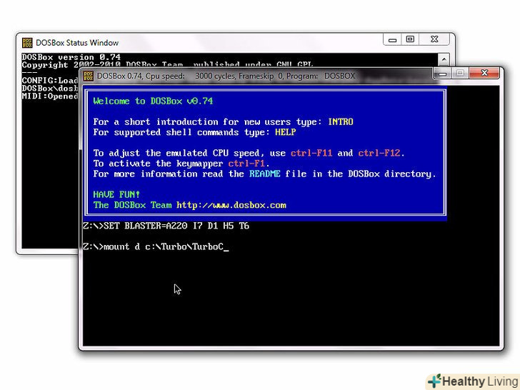 - Для версій Програми DOSBox вище, ніж 0.74-відкрийте файл dosbox.conf настановної директорії програми, використовуючи будь-який текстовий редактор. Для версії 0.73, зайдіть в меню Пуск і натисніть на " Configuration "і, потім, на"Edit Configuration". Прокрутіть вниз документа і додайте рядки, які будуть автоматично запускатися, під час старту DOSBox.