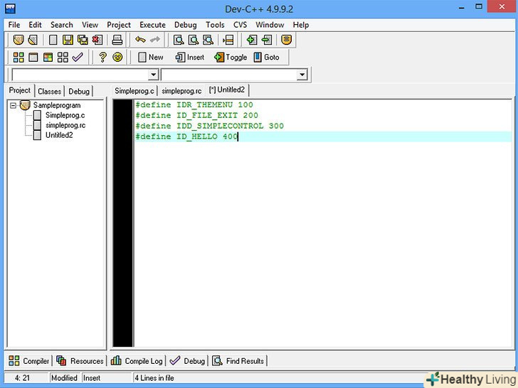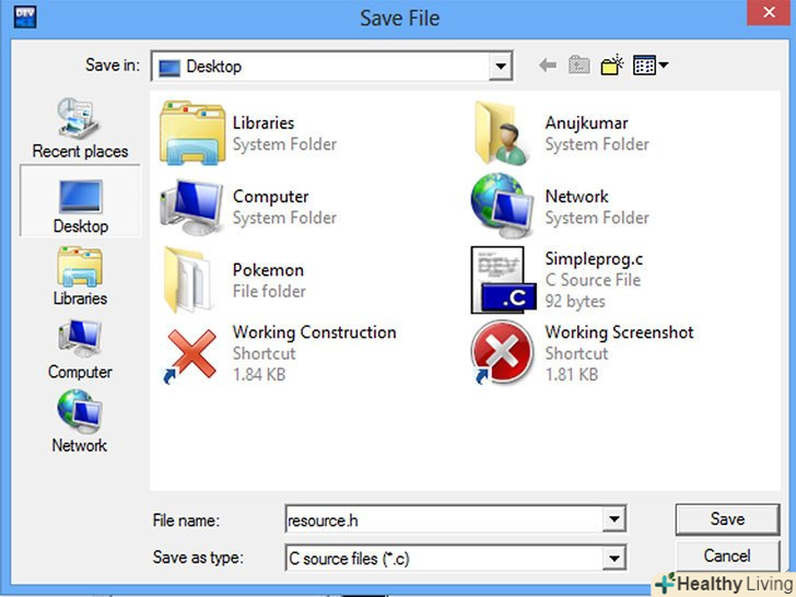 Зберегти цей файл як resource.h .Пам'ятайте, як ми писали "# include " resource.h""? Ну, ось чому ми це зробили. Нам потрібно було присвоїти значення.