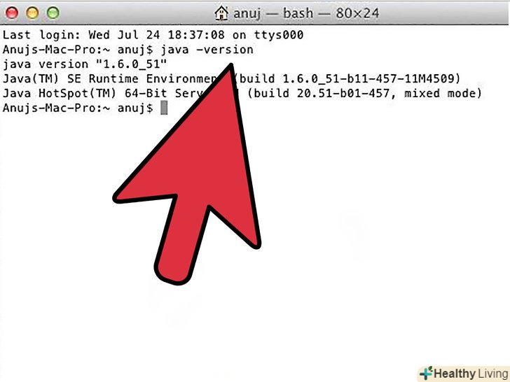 Відкрийте вікно терміналу і в ньому наберіть " java-version"- Ця команда повинна повернути щось на зразок: Java(TM) 2 Runtime Environment, Standard Edition (build 1.6) якщо вона повертає-bash: java: command not found, це означає, Що або java не встановлена, або ви не вказали шляхи правильно
