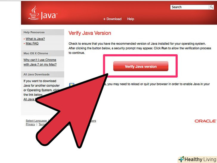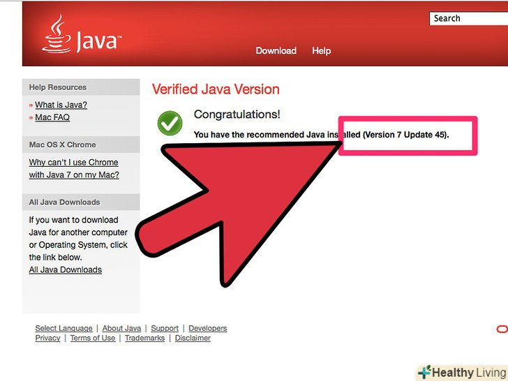 Відкрийте нове вікно у вашому браузері і клікнітьСюди для переходу на сайт Java. Oracle, розробник платформи Java, створив просту сторінку, яка перевіряє встановлену у вас Java і повідомляє точну версію. Це можна зробити з будь-якої операційної системи.