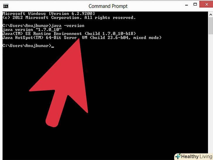 Натисніть поєднання клавіш windows + r і введіть "cmd"і в командному рядку введіть java-version. Результат буде виглядати приблизно так: Java version "1.6.0_03 Java(TM) SE Runtime Environment (build 1.6.0_03-b05) Java HotSpot(TM) Client VM (build 1.6.0_03-b05, mixed mode, sharing).