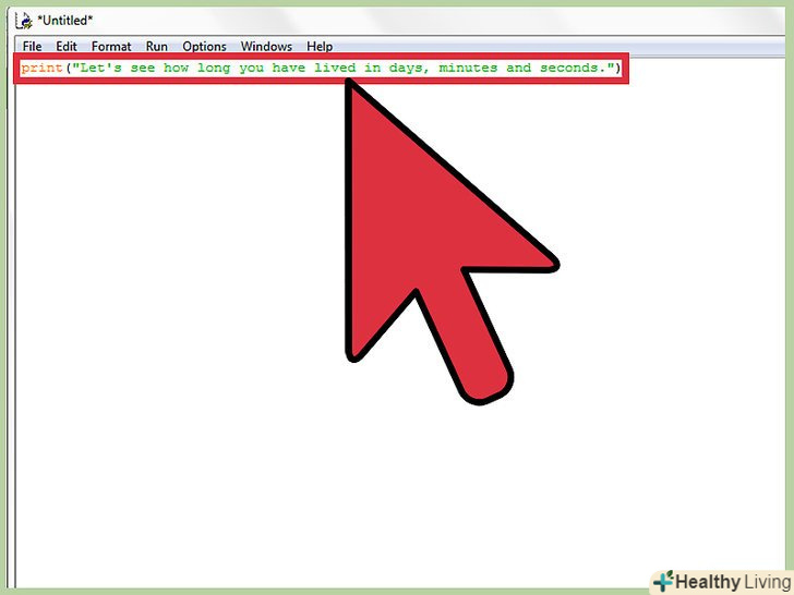 Додайте вступне речення.для цього скористайтеся функцією "print". Введіть перший рядок коду:Print(" обчислимо, скільки днів, хвилин і секунд ви живете.")