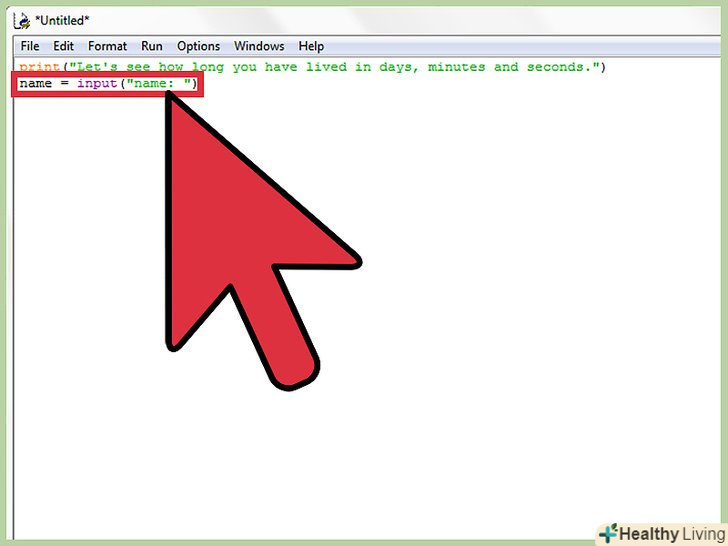 Щоб дізнатися ім'я користувача, введіть другий рядок коду:Name = Input("ім'я: ")