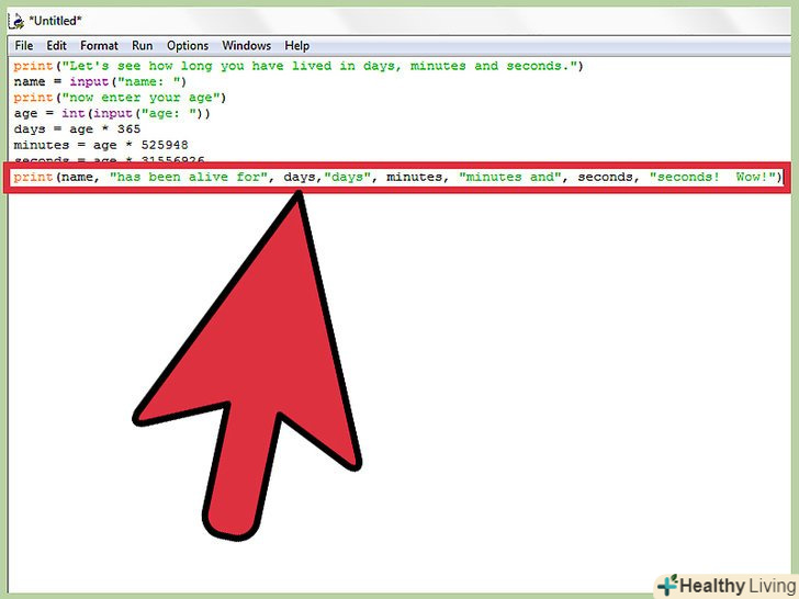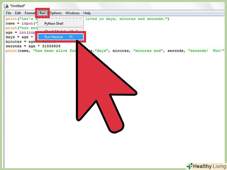 Привітайте себе, тому що ви написали програмний код, який працює! збережіть його і запустіть; для цього натисніть " Run "(запустити) gt; «Run module» (запустити модуль).<