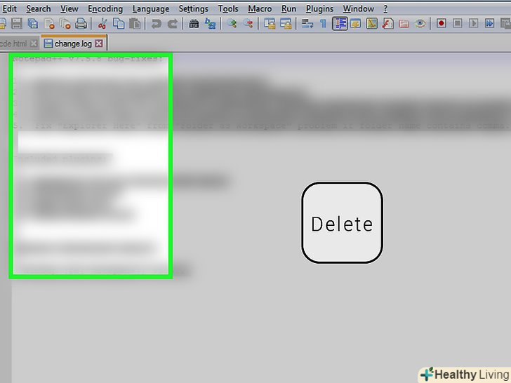 Видаліть будь-який текст у вікні Notepad++.швидше за все, це будуть нотатки розробників, тому просто виділіть їх і видаліть.