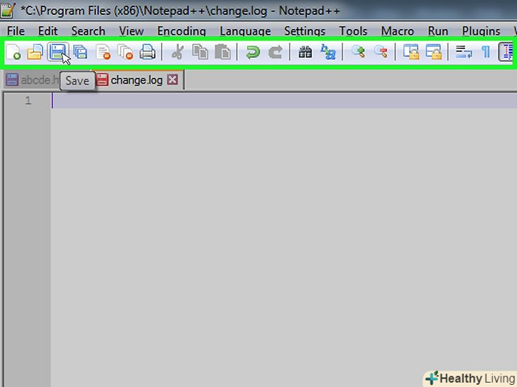 Вивчіть кнопки меню.у верхній частині вікна Notepad++ можна побачити ряд кольорових кнопок. Наведіть вказівник миші на кожну кнопку, щоб зрозуміти, за що відповідальна кожна з них.- Синя дискета у верхній лівій частині вікна, наприклад, дозволяє зберігати всі зміни, що вносяться в документ.