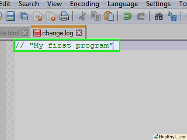 Додайте заголовок до програми. введіть//, додайте назву програми (наприклад, «моя перша програма») і натисніть ↵ Enter.- Будь-який текст, що йде після подвійної косої риси, не буде сприйматися програмою як код.