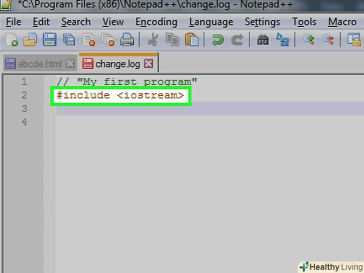 Додайте директиву препроцесора. введіть#include lt;iostreamgt;і натисніть ↵ Enter. Ця команда повідомляє компілятору C++, що наступні рядки є частиною програми.