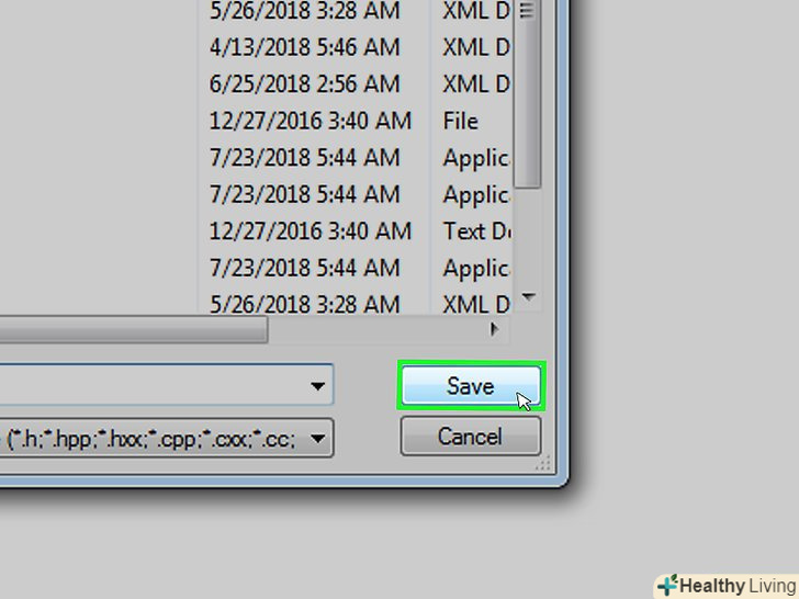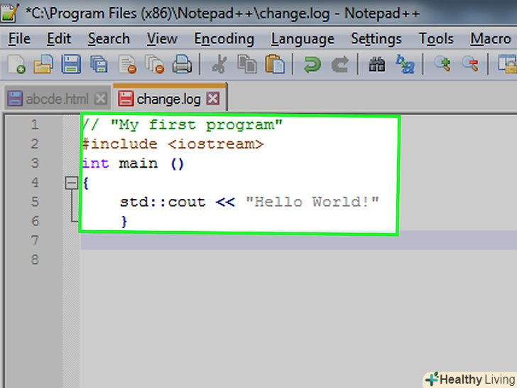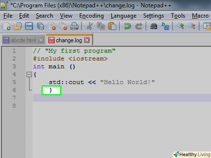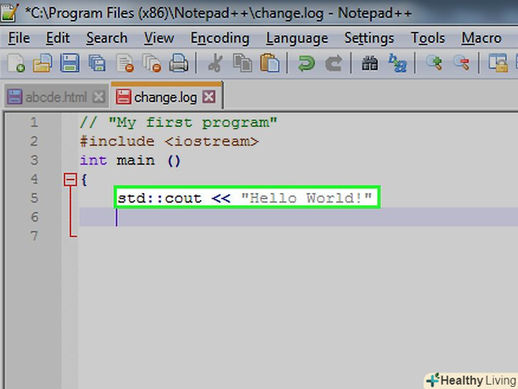 Збережіть свою програму.відкрийте меню «Файл "і виберіть" Зберегти як ... «у спадному меню введіть ім'я програми, Виберіть місце для збереження і натисніть»Зберегти".- Якщо на комп'ютері є програма, яка дозволяє запустити код на C++, ви зможете відкрити в ній свою програму " Привіт, світ!».