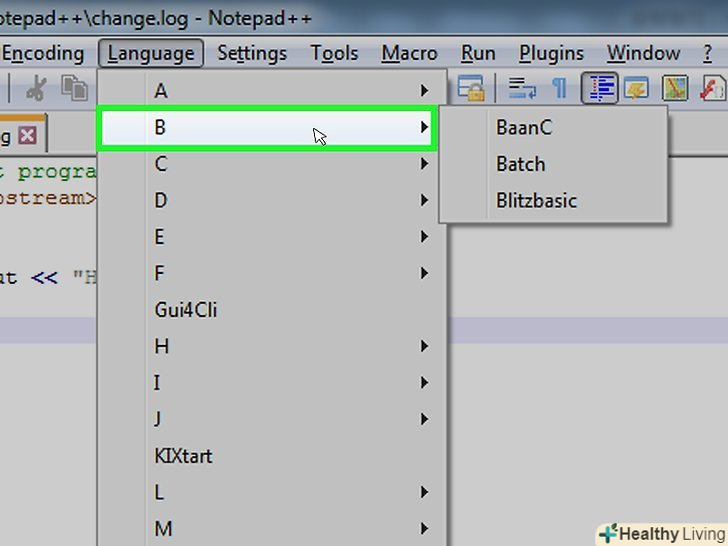 У випадаючому меню "Синтаксиси"Наведіть курсор миші на буквуB, щоб відобразити список мов.