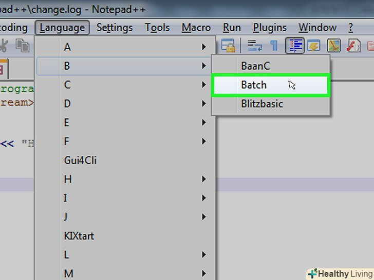 ВиберітьBatch (пакетний файл) зі спадного списку. пакетний файл є модифікованою версією команд, що використовуються в командному рядку, тому всі пакетні файли відкриваються в командному рядку.[2]