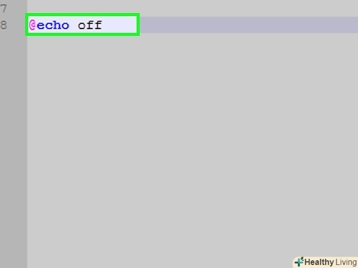 Введіть команду "echo". додайте рядок@echo offв Notepad++ і натисніть ↵ enter.