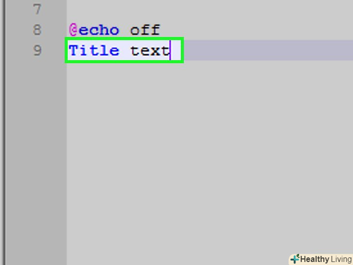 Додайте заголовок програми. введітьTitle «заголовок»і натисніть ↵ Enter, обов'язково замінивши «заголовок» бажаним заголовком.- При запуску програми текст заголовка буде відображатися у верхній частині вікна командного рядка.