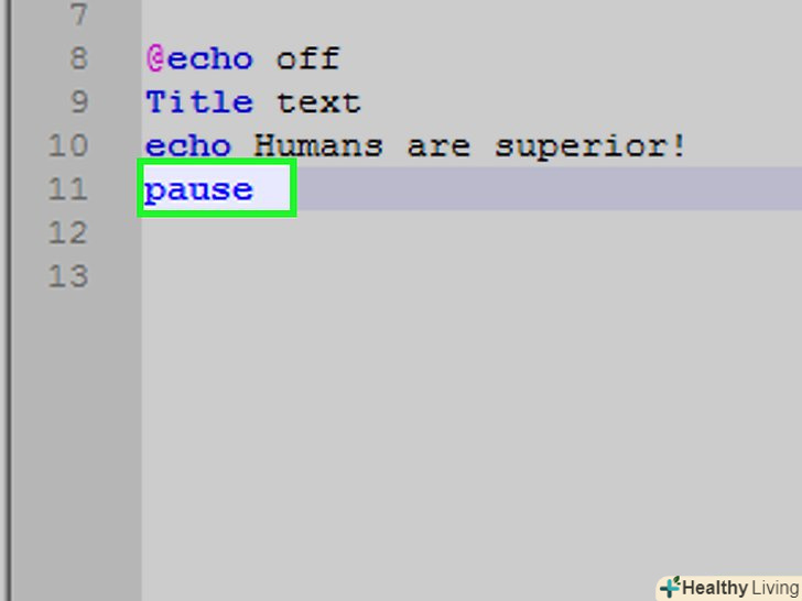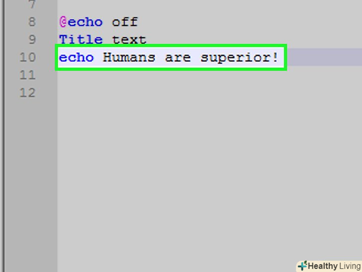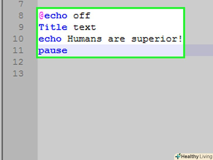 Перегляньте код програми. Він повинен виглядати наступним чином:@echo offTitle Improved Command PromptEcho Люди-вища раса!Pause