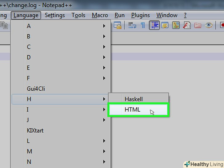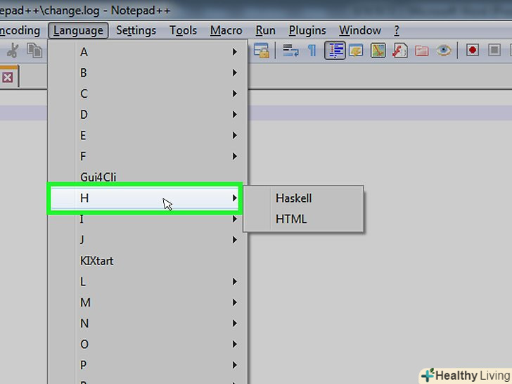 У випадаючому меню "Синтаксиси"Наведіть курсор миші на буквуH, щоб відобразити список мов.
